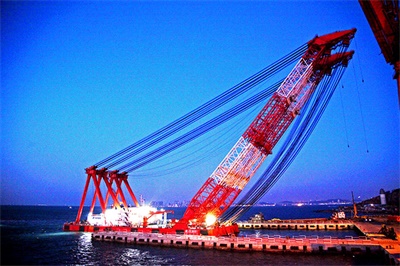 大型浮式起重機也稱為起重船或浮吊,可采用雙臂架結(jié)構(gòu),起重量可達(dá)3600噸,起升高度可達(dá)110米,廣泛應(yīng)用于沿海及近海的大型橋梁和設(shè)備的吊運、安裝及打撈作業(yè)等。該類起重機起重量大、起升高度高,操作方便、靈活、準(zhǔn)確,維修方便,能滿足施工海域風(fēng)大、浪高、水深、流急等惡劣海況的要求,技術(shù)達(dá)到國內(nèi)領(lǐng)先水平。