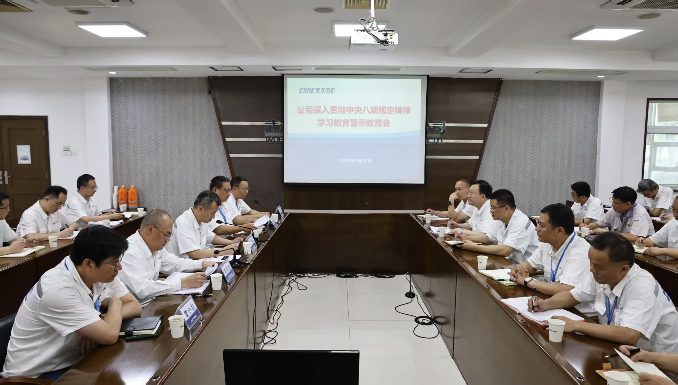 5月30日,中船集團武漢船機黨委召開深入貫徹中央八項規(guī)定精神學(xué)習(xí)教育警示教育會。公司黨委副書記、總經(jīng)理程立兵主持會議。公司黨委委員、副總經(jīng)理潘文勝傳達了習(xí)近平總書記關(guān)于加強黨的作風(fēng)建設(shè)的重要論述和重要指示批示精神。公司黨委委員、總會計師陳世龍通報了中央層面深入貫徹中央八項規(guī)定精神學(xué)習(xí)教育工作專班、中央紀(jì)委辦公廳公開通報李獻林、葉金廣等人違規(guī)吃喝嚴(yán)重違反中央八項規(guī)定精神問題,以及公司違反中央八項規(guī)定精神典型案例。會議集中觀看了警示教育片。