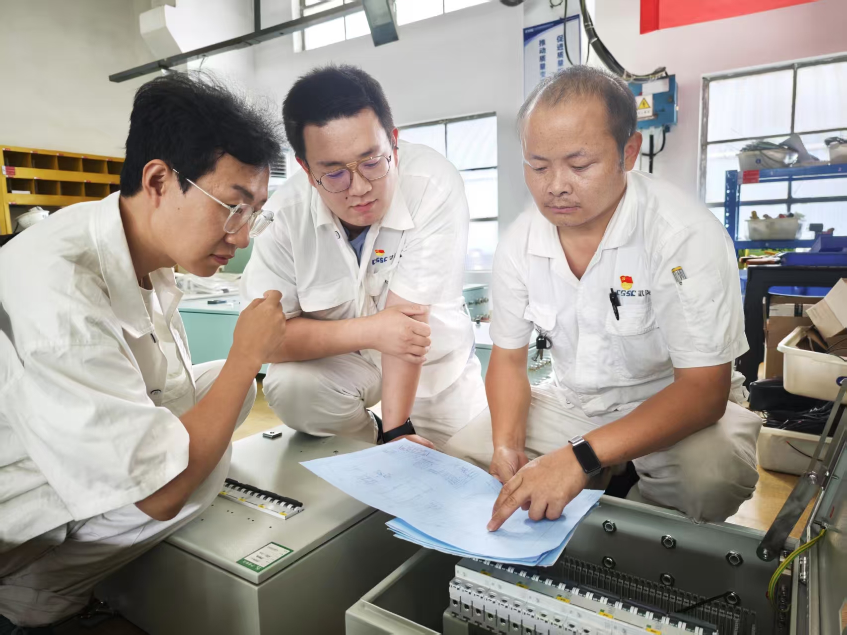 黨員帶頭,攻堅(jiān)克難。電工組長何國虎,作為一線黨員、技能骨干,在完成某重點(diǎn)產(chǎn)品階段性試驗(yàn)后,挺膺擔(dān)當(dāng),及時(shí)趕回部門支援電控箱生產(chǎn),與組員吳天賦、李珉驍、袁菁菁、李江濤等一起趕進(jìn)度、保節(jié)點(diǎn)。面對小組青年員工對新產(chǎn)品、新工藝裝配經(jīng)驗(yàn)欠缺的情況,何國虎充分發(fā)揮黨員先鋒模范作用,提前借出圖紙,利用工作間隙,帶頭示范正確裝配流程,傳授工作經(jīng)驗(yàn)。通過團(tuán)隊(duì)共同努力,小組成員在一個(gè)月內(nèi)完成了多個(gè)重難點(diǎn)項(xiàng)目,節(jié)點(diǎn)實(shí)現(xiàn)率100%。